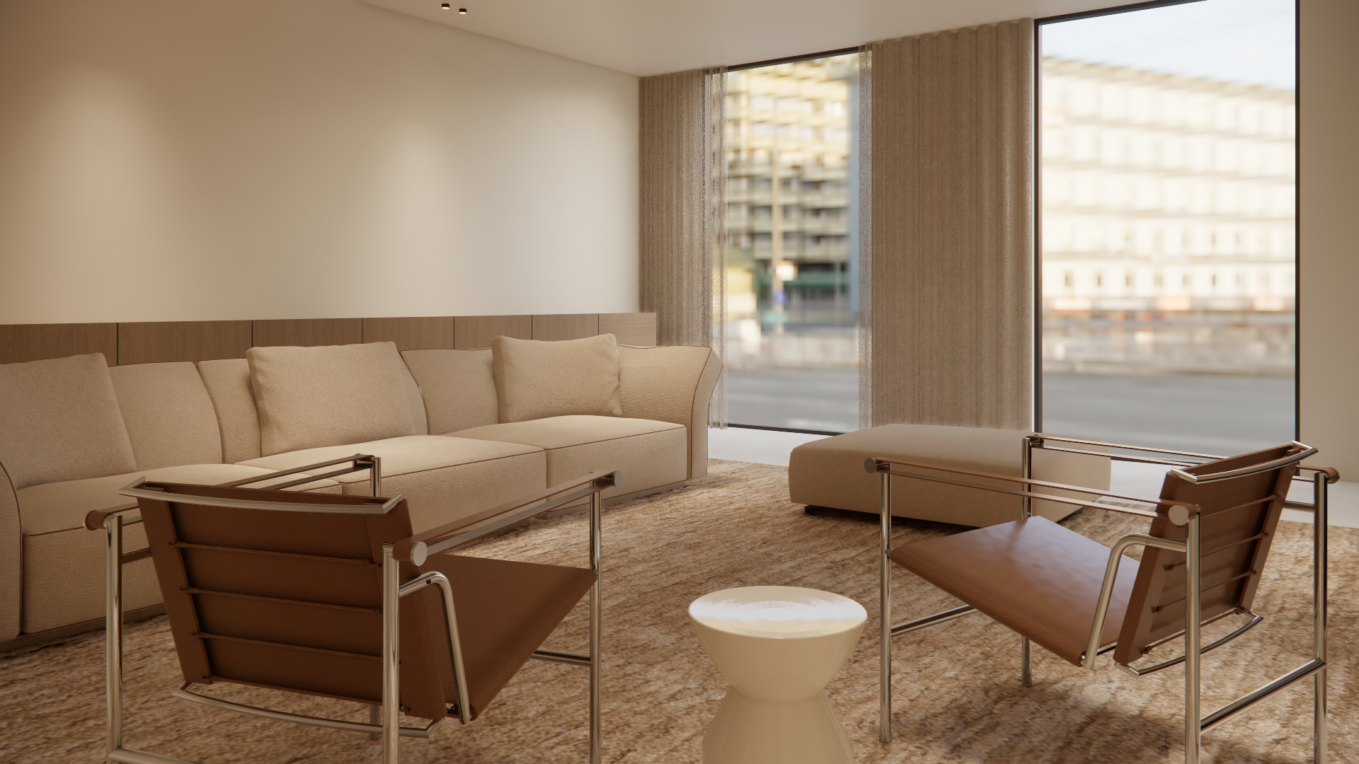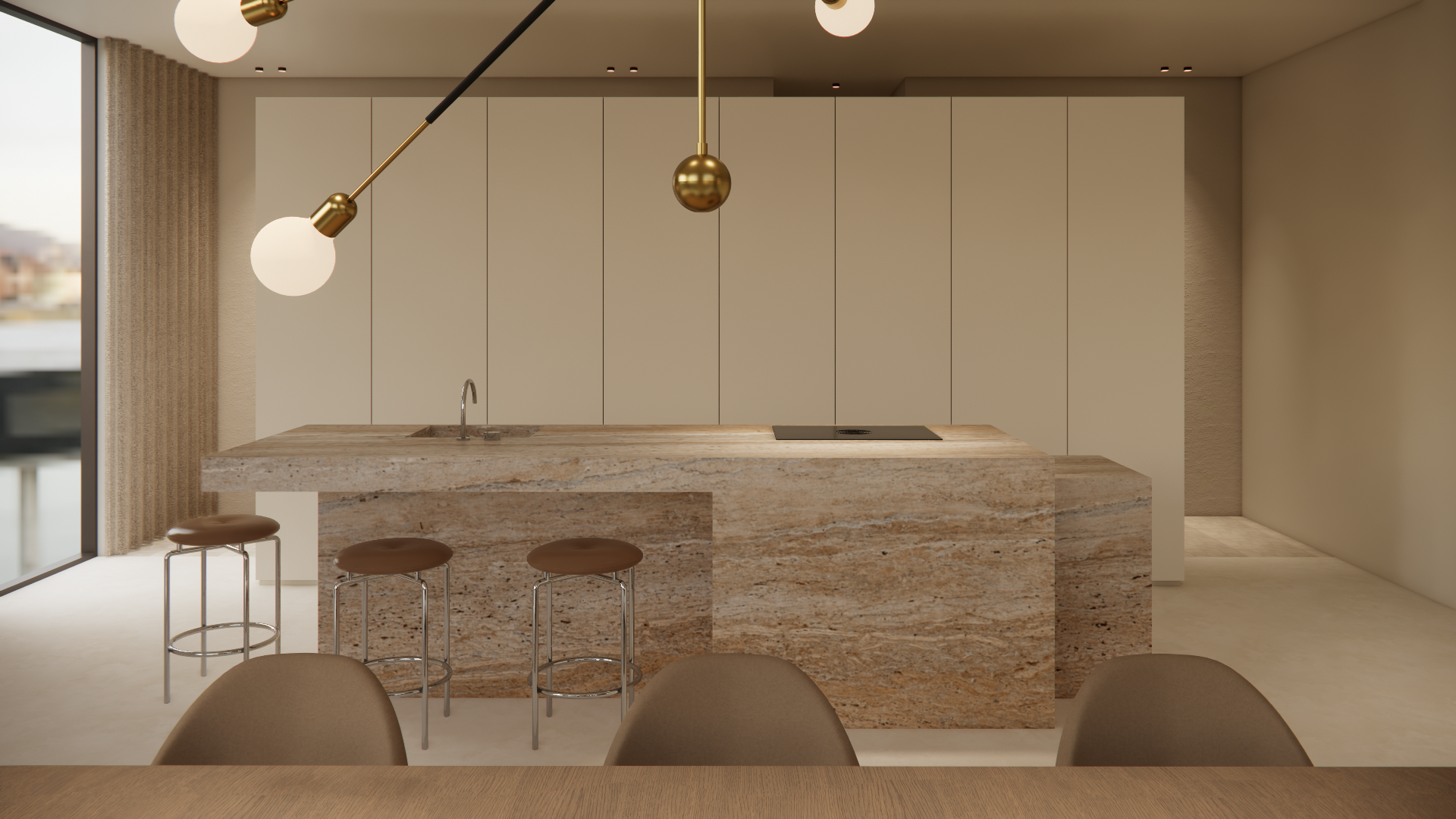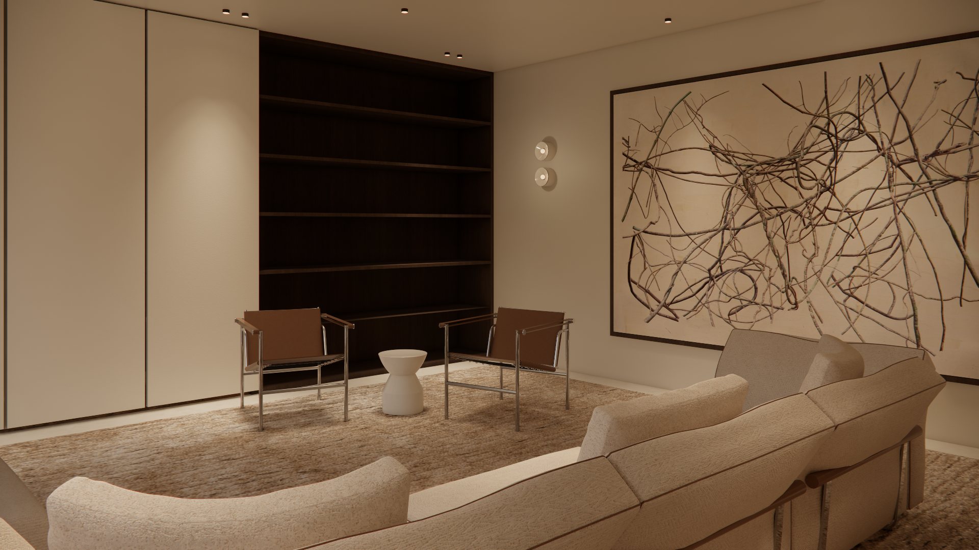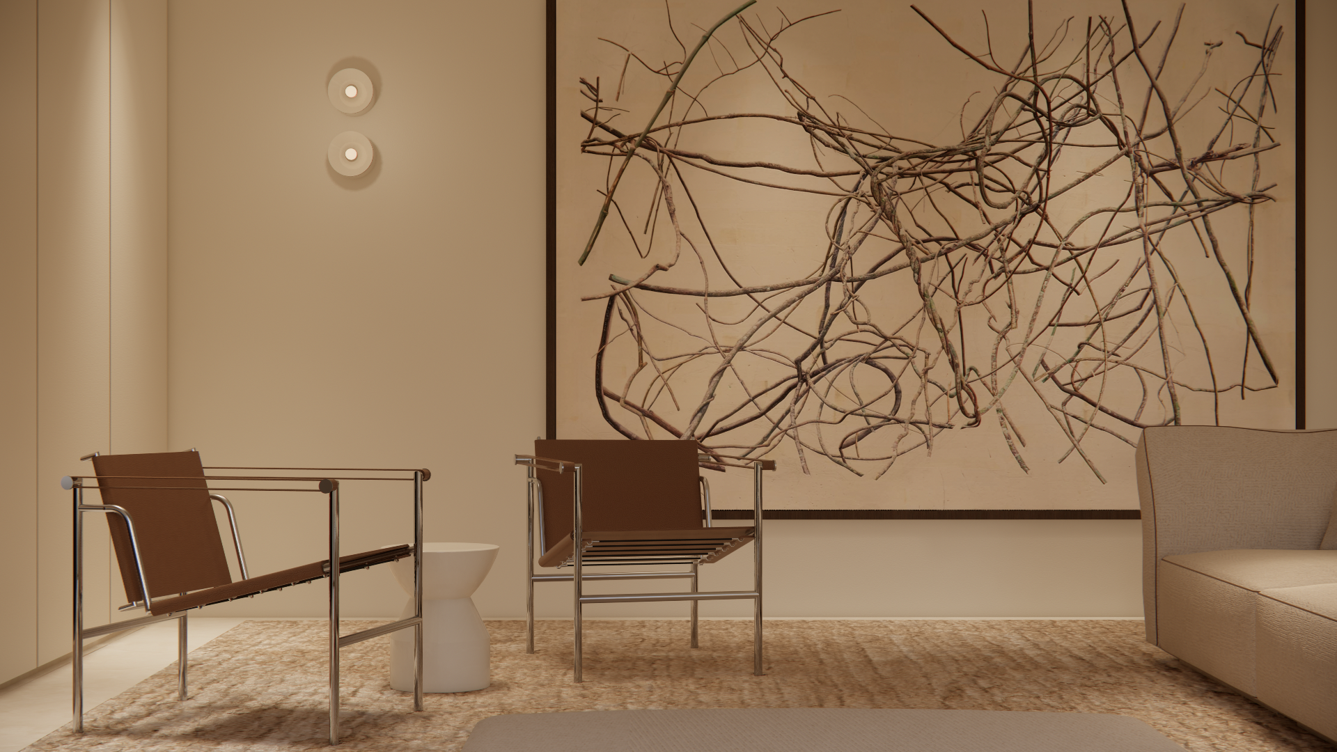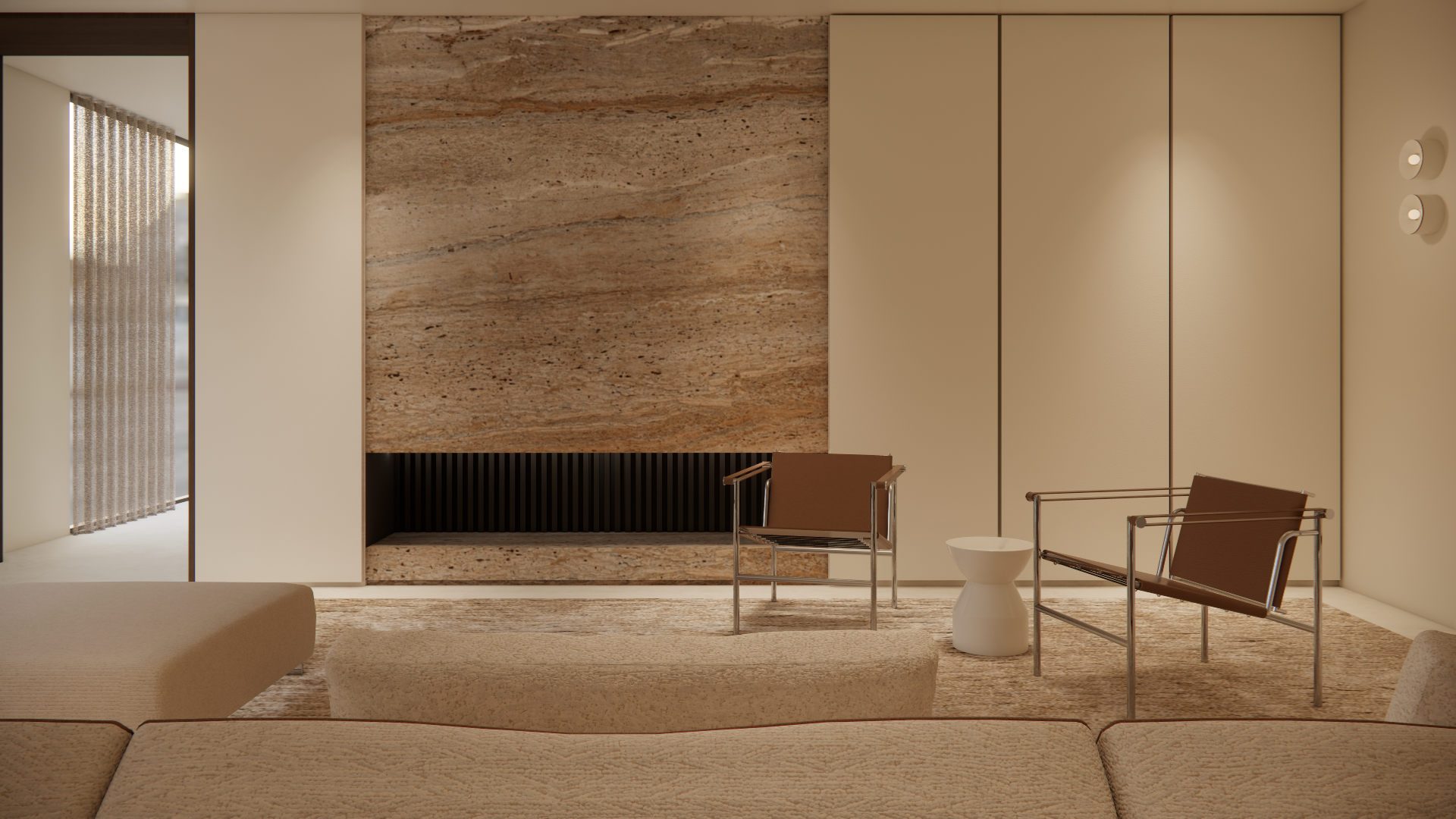 Penthouse design. Interior palette inspired by deserts and sandy dunes.