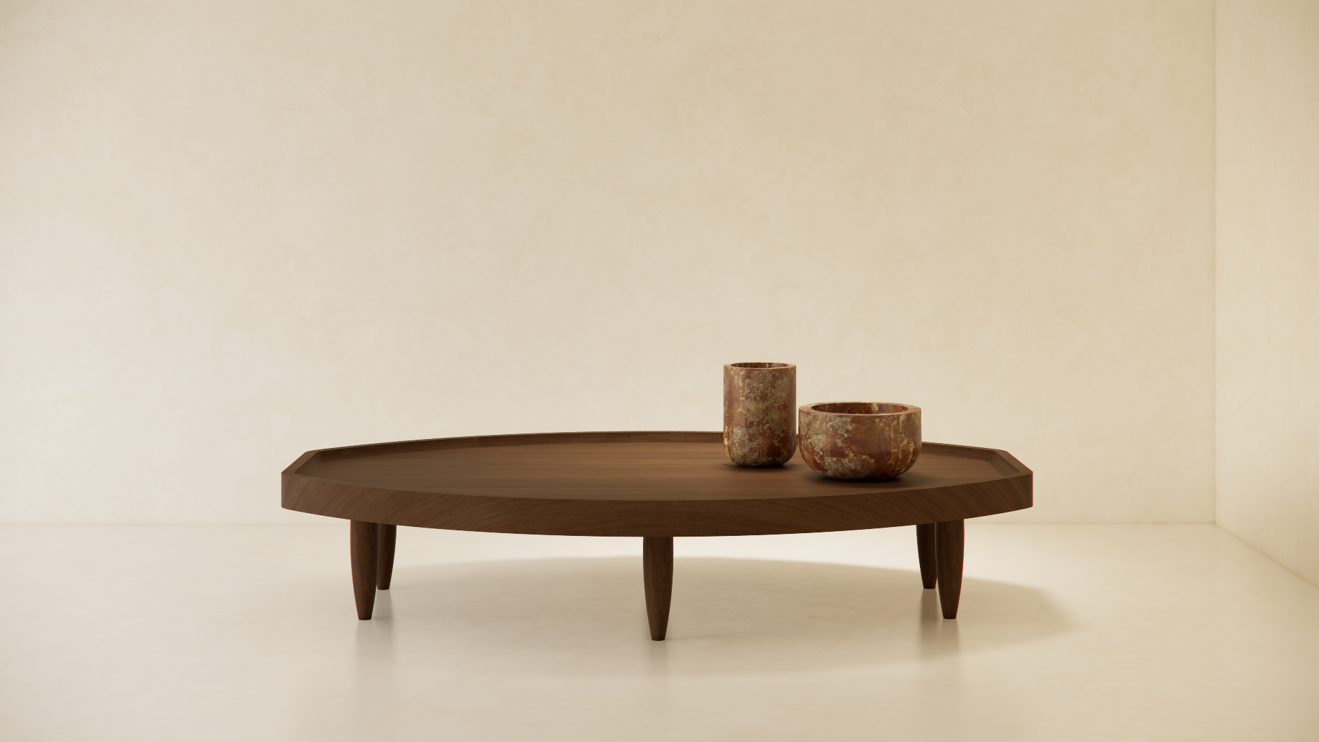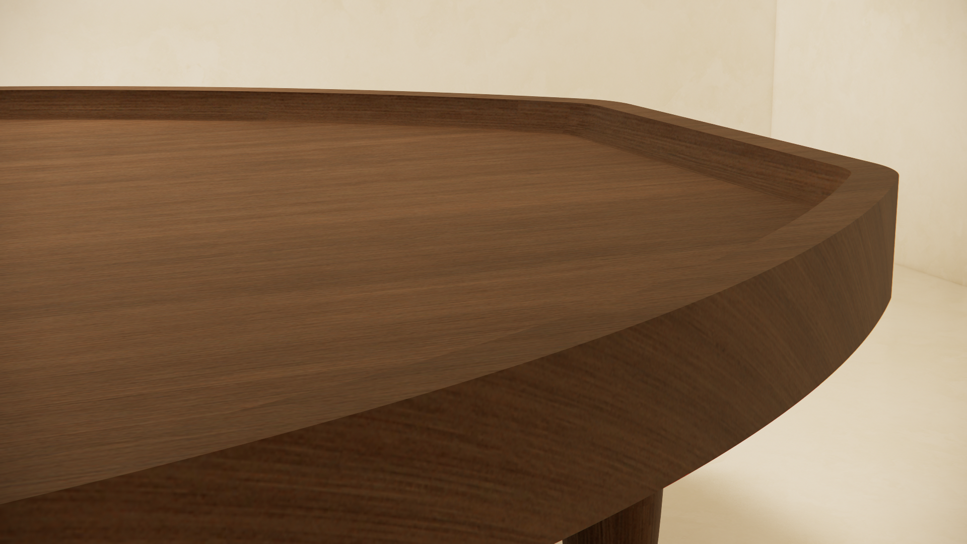 Inspired by the ancient civilizations in Latin-America. The shape of the Inti coffee table derived from the path of the sun, rising and falling. This large coffee table is handmade out of solid American walnut, finished with black oil.